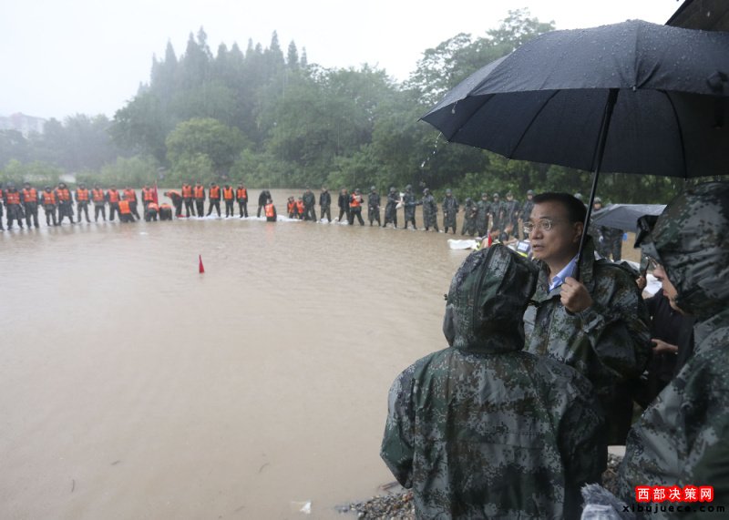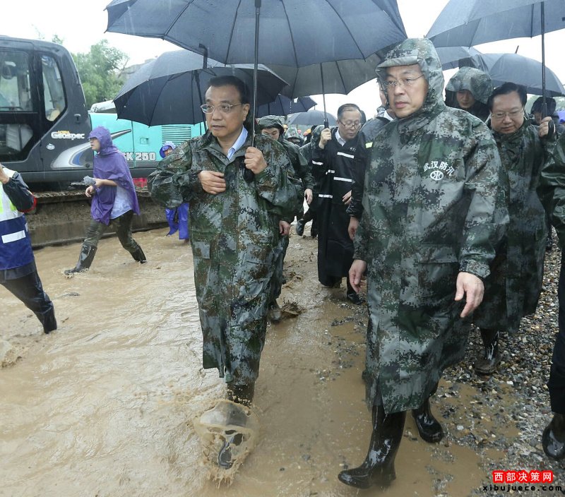 李克強冒大雨在武漢長江干堤現(xiàn)場指揮搶險救災