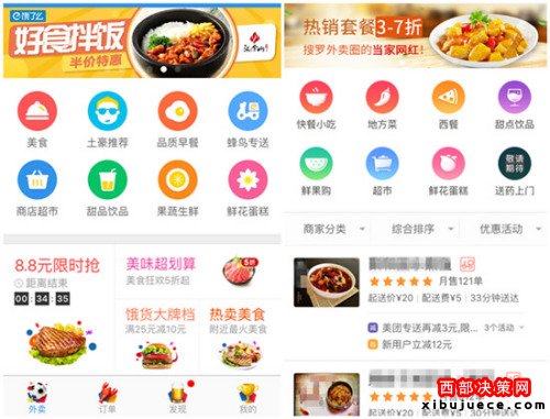 餓了么(左)與美團訂餐APP界面。