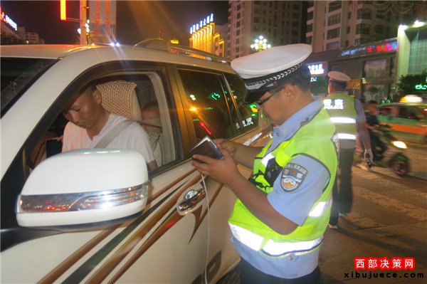 浪漫七夕夜靖邊交警夜查酒駕保安全