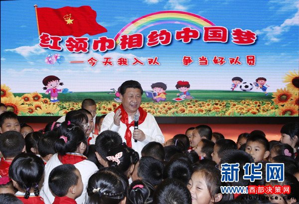 ?。?014年5月30日,習(xí)近平來到北京市海淀區(qū)民族小學(xué),參加慶祝“六一”國際兒童節(jié)活動(dòng)。這是習(xí)近平在參加少先隊(duì)入隊(duì)儀式時(shí),向少先隊(duì)員們致以節(jié)日問候。新華社記者鞠鵬攝)