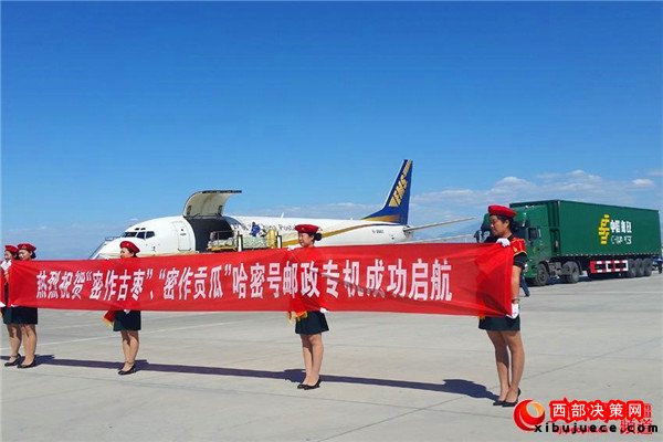9月12日19:32分,一架裝載“密作”哈密古棗、“密作”哈密貢瓜的郵政專機從新疆哈密機場啟航首航廣東,將于13日凌晨抵達(dá)深圳機場。