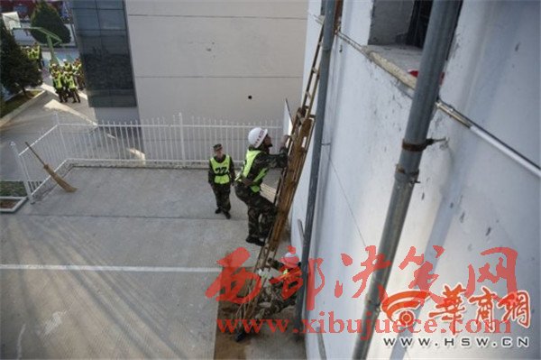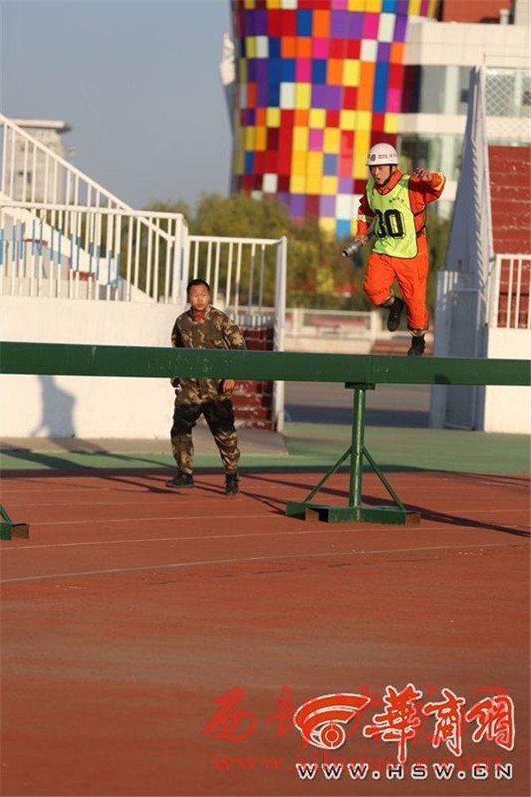 負(fù)重攀登10樓  榆林市消防大比武130余名鐵漢炫技