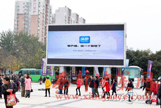 在農(nóng)高會(huì)的戶外大屏上,陜西頭條客戶端為群眾展示通過手機(jī)看農(nóng)高會(huì)的便捷方式