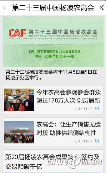 今年,陜西頭條客戶端與西部網(wǎng)PC端、微博、微信等形成整體宣傳矩陣。聯(lián)合第23屆楊凌農(nóng)高會(huì)籌委會(huì)新聞中心開通上線“第23屆楊凌農(nóng)高會(huì)網(wǎng)上新聞中心”,建成農(nóng)高會(huì)新聞匯集和媒體服務(wù)平臺(tái)。通過手機(jī)將最權(quán)威、最準(zhǔn)確的“農(nóng)高會(huì)”新聞資訊傳遞到每一個(gè)人身邊。