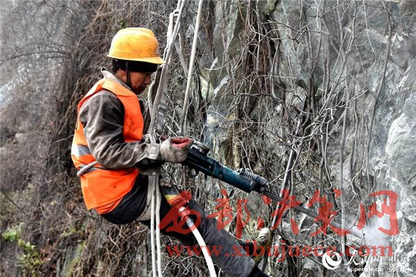 在重大地質(zhì)災害隱患點治理現(xiàn)場,記者發(fā)現(xiàn)了一群“大山里的蜘蛛人”。他們在50米高的懸崖上作業(yè),用鐵絲網(wǎng)將大山“網(wǎng)住”,防止懸崖上的石塊掉落,保證國道上來往車輛的行車安全。記者注意到,整個作業(yè)期間,他們都用一根安全繩系住身體,吊在懸崖邊。初冬的北京寒風已經(jīng)有些刺骨,在山區(qū)更是比市區(qū)低了幾度,而這些“蜘蛛人”也沒有進行特別的保暖工作。