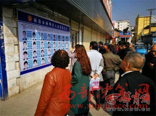 11月16日,在商洛區(qū)北新街中段府前路東口,不少市民正在查看剛貼出來的老賴圖片,商州區(qū)安監(jiān)局副局長呂某的名字和圖片赫然在列。