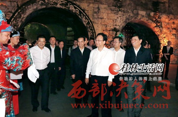 景俊海一行還來(lái)到正陽(yáng)東巷歷史文化街區(qū)進(jìn)行調(diào)研。經(jīng)過(guò)修繕改造后的正陽(yáng)東巷歷史文化街區(qū),青磚黛瓦、古色古香,夜晚大紅燈籠高高掛起,許多中外游客徜徉其間,仿佛有種時(shí)光穿梭之感。景俊海一行沿著古樸的巷子,認(rèn)真聽(tīng)取了關(guān)于東巷改造情況介紹,并饒有興趣地參觀了保護(hù)修繕后的馬啟邦舊居、岑氏公保弟舊址等。他還登上恢復(fù)重建的桂林逍遙樓,一邊參觀一邊聽(tīng)取逍遙樓的歷史典故、重建情況等介紹,對(duì)桂林市委、市政府實(shí)施“尋找桂林文化的力量,挖掘桂林文化的價(jià)值”戰(zhàn)略,精心設(shè)計(jì)、挖掘和保護(hù)桂林歷史文化表示充分肯定。景俊海一行還前往愚自樂(lè)園法國(guó)地中海俱樂(lè)部桂林度假村、“兩江四湖”環(huán)城水系工程、靖江王府、臨桂新區(qū)“一院兩館”(桂林大劇院、桂林博物館、桂林圖書(shū)館)、桂林崇華中醫(yī)文化街等文化項(xiàng)目進(jìn)行調(diào)研。