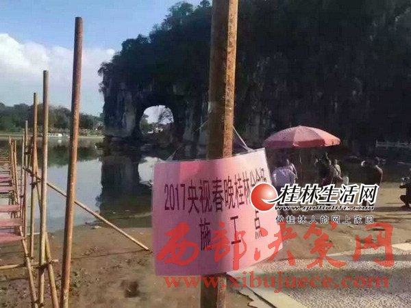 為了真正體現(xiàn)東西南北中,全民大聯(lián)歡,2017年央視春晚延續(xù)2016年春晚特色,特別設(shè)置了東西南北四大分會(huì)場(chǎng),桂林憑借秀美的山水風(fēng)光和厚重的歷史文化底蘊(yùn),被確定為2017年央視春晚南方分會(huì)場(chǎng)。17日上午,景俊海一行來(lái)到2017年央視春晚桂林分會(huì)場(chǎng)外景地象山景區(qū)。象鼻山被薄霧籠罩,如夢(mèng)似幻,漓江煙波渺渺,美不勝收,山水和諧相融構(gòu)成了中國(guó)南方最具代表性的自然美景。從11月12日起,春晚桂林分會(huì)場(chǎng)舞臺(tái)搭建工作已經(jīng)進(jìn)場(chǎng),工人正在用一根根鋼管搭建水上舞臺(tái)。