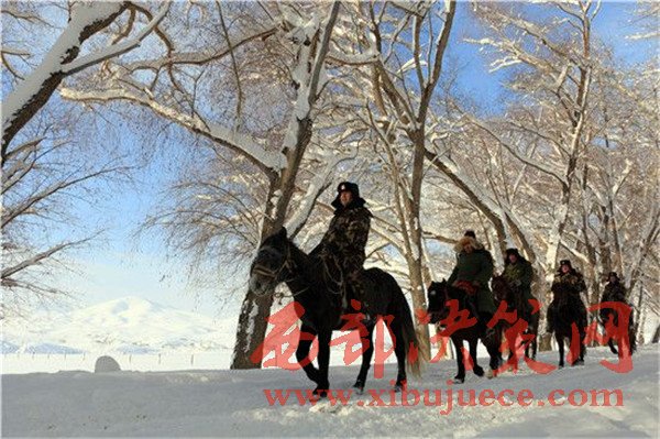 庫爾特邊防派出所官兵與護邊員騎馬趕往邊境一線。
