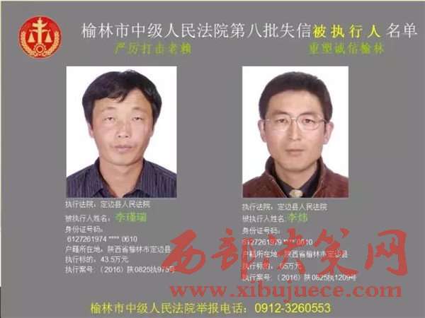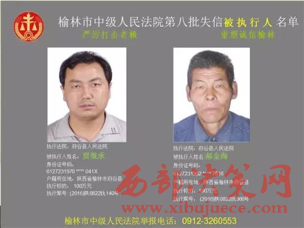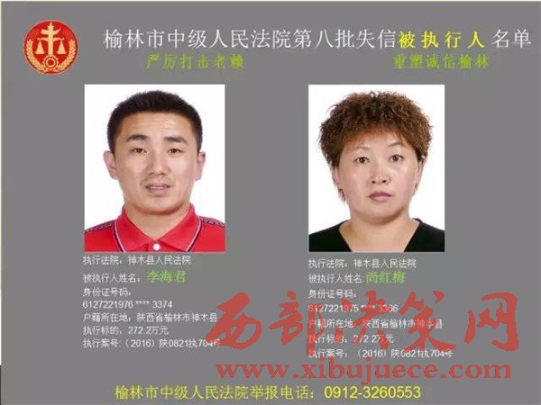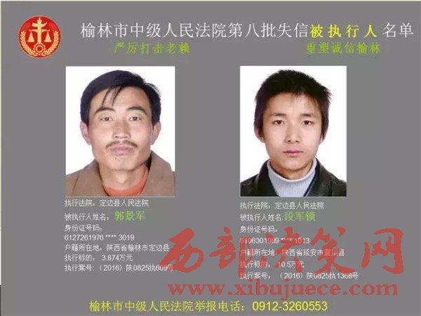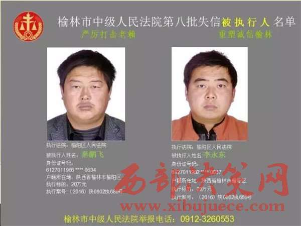 榆林中院最新發(fā)布第八批失信被執(zhí)行人"黑名單"