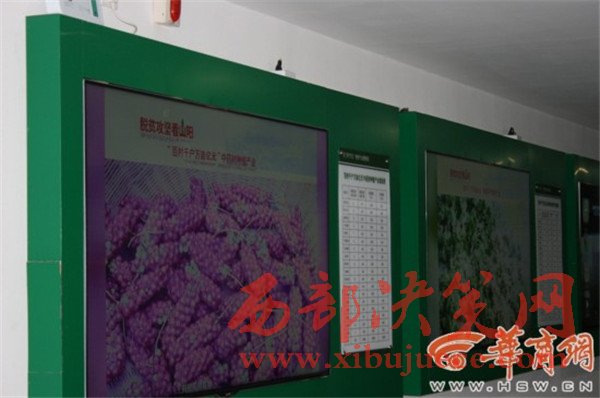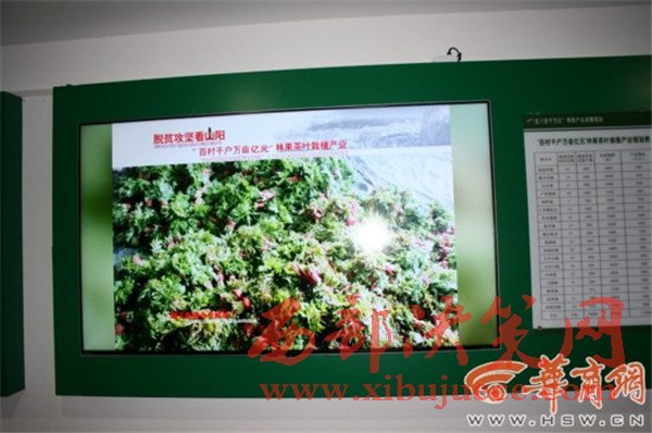 在山陽扶貧開發(fā)局辦公場(chǎng)所走廊,一側(cè)墻上安裝有6臺(tái)液晶電視看上去很顯眼,滾動(dòng)播放著扶貧圖片和相關(guān)數(shù)據(jù)。