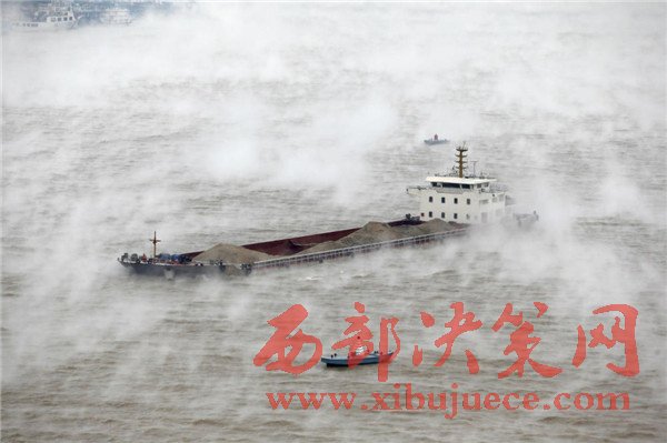 寒潮來襲 長江江面煙波浩渺