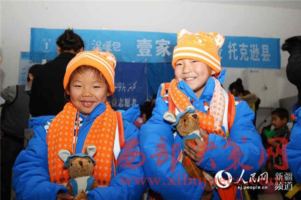 多名志愿者到托克遜縣開展"壹基金溫暖包"發(fā)放活動(dòng)