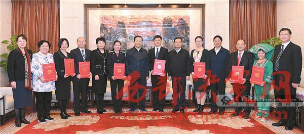 在日前中央文明委舉行的第一屆全國(guó)文明家庭評(píng)選表彰活動(dòng)中,廣西8戶家庭獲此殊榮。12月13日,自治區(qū)黨委書記彭清華、自治區(qū)主席陳武在京看望了剛參加過(guò)表彰大會(huì)的廣西受表彰家庭代表,向大家表示祝賀。