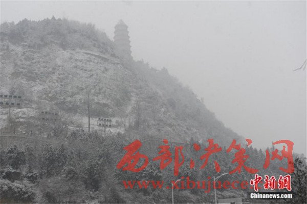 延安喜迎降雪 光禿禿的樹枝綴滿了潔白的"梨花"