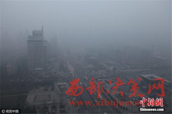 2016年12月19日,鳥瞰西安城市,霧霾籠罩,不太遠的建筑也幾乎被霧霾“吞噬”,看不到一點影,當日早八點,空氣質(zhì)量指數(shù)達409,為嚴重污染。 圖片來源:視覺中國