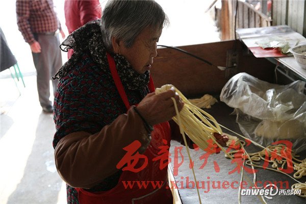 問賀玉蘭老人做得一碗好面有啥竅門,賀玉蘭老人說:“有啥竅門?實(shí)實(shí)在在做就成,一個(gè)是面要揉好、揉成光光亮亮的軟面團(tuán),揉好的面醒2個(gè)小時(shí)后就可以搓成粗條子盤放在盆子里,一層層碼放,刷上菜籽油,一個(gè)是防止面粘在一起,另外也能使面口感更爽滑,盤放好后再醒2個(gè)小時(shí)。”