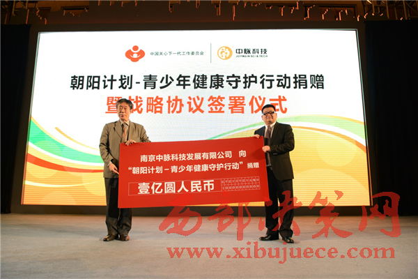 南京中脈科技發(fā)展有限公司捐贈一億元,與中國關(guān)心下一代工作委員會發(fā)起“朝陽計劃-青少年健康守護(hù)行動”