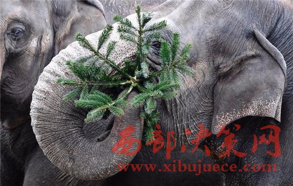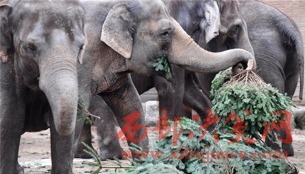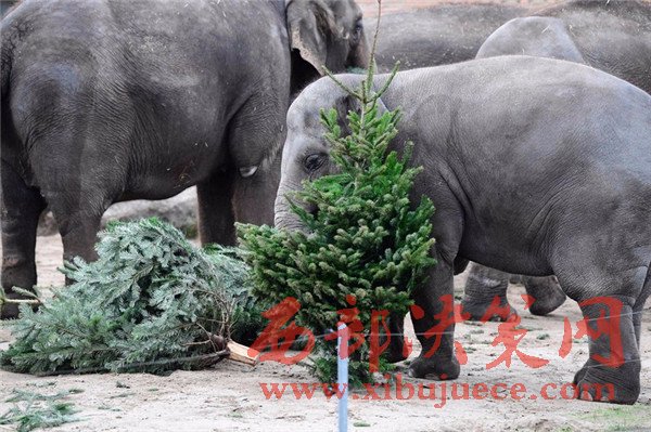 德動物園大象節(jié)后享用“圣誕樹”大餐