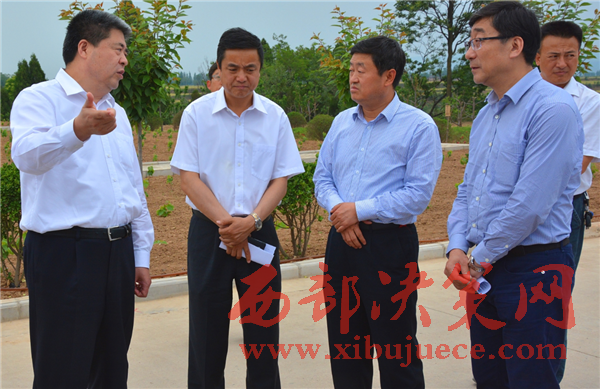 縣委書記何玲縣長張新科在搭載式扶貧試點企業(yè)千陽縣海升蘋果給檢查的上級領(lǐng)導(dǎo)匯報工作.