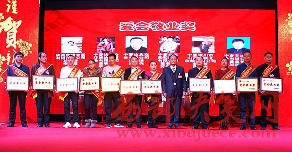 年會(huì)上,張海龍會(huì)長(zhǎng)、李明義執(zhí)行會(huì)長(zhǎng)一起向2016年新增常務(wù)副會(huì)長(zhǎng)、副會(huì)長(zhǎng)、理事授牌;商會(huì)黨支部書記、秘書長(zhǎng)王惠選宣讀了寧夏陜西商會(huì)關(guān)于表彰獎(jiǎng)勵(lì)2016年度特殊奉獻(xiàn)獎(jiǎng)、誠(chéng)信企業(yè)獎(jiǎng)、創(chuàng)新企業(yè)獎(jiǎng)、愛(ài)會(huì)敬業(yè)獎(jiǎng)企業(yè)單位的決定。自治區(qū)人民檢察院原檢察長(zhǎng)師夢(mèng)雄向榮獲商會(huì)特別奉獻(xiàn)獎(jiǎng)的張海龍會(huì)長(zhǎng)、李明義執(zhí)行會(huì)長(zhǎng)頒獎(jiǎng);張海龍會(huì)長(zhǎng)、李明義執(zhí)行會(huì)長(zhǎng)、黨支部書記、秘書長(zhǎng)王惠選分別向11個(gè)榮獲誠(chéng)信企業(yè)、11個(gè)榮獲創(chuàng)新企業(yè)、11個(gè)榮獲愛(ài)會(huì)敬業(yè)企業(yè)單位頒獎(jiǎng)。