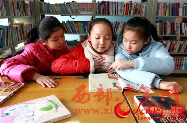 2月4日,新疆生產(chǎn)建設(shè)兵團(tuán)第五師八十一團(tuán)城鎮(zhèn)社區(qū)的農(nóng)家書屋里,學(xué)生們在閱讀自己喜愛的書籍。