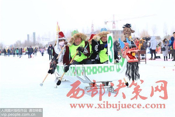 新疆首屆冰上龍舟大賽在北屯市舉辦