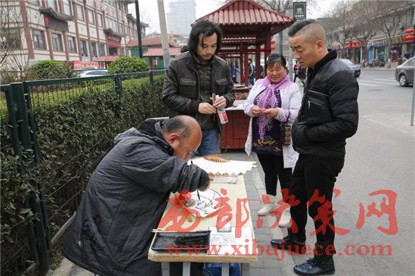 這名長(zhǎng)發(fā)先生被賈維軍的精神打動(dòng),用100元買了一把賈維軍的書法折扇。