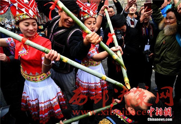2月26日,“中國·西疇2017女子太陽節(jié)”在云南省文山壯族苗族自治州西疇縣舉辦。女子太陽節(jié)又稱女人節(jié),是西疇縣湯谷村的傳統(tǒng)節(jié)日,起源于母系氏族社會(huì)先民對(duì)太陽的崇拜。每年農(nóng)歷二月初一這一天,所有年滿16歲以上壯族女子沐浴凈身祭祀太陽?;顒?dòng)期間,除了傳統(tǒng)太陽神祭祀外,還有千人摸魚、斗鳥比賽以及壯鄉(xiāng)童謠節(jié)目表演等活動(dòng)。