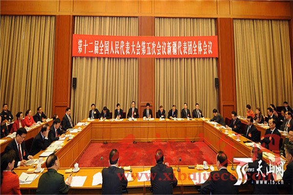 3月5日下午,出席十二屆全國(guó)人大五次會(huì)議的新疆代表團(tuán)舉行全體會(huì)議,審議政府工作報(bào)告。