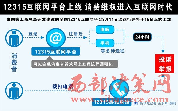 由國家工商總局開發(fā)建設(shè)的全國12315互聯(lián)網(wǎng)平臺14日試運(yùn)行并將于15日正式上線,消費(fèi)者在平臺上登錄注冊后可以通過電腦、手機(jī)等多種途徑24小時進(jìn)行投訴、舉報(bào)。
