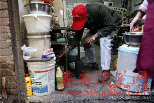 一進門,看見61歲的夏平安坐在門房里,端著個大老碗正在吃面。華商報記者問:“自己做的面?”他停止吃面,頭一抬,慢慢地說:“老板做的。”他待的是煤場門房,也是他的宿舍,屋子里靠墻擺著一張單人床,上面鋪著厚厚的被褥。院子里堆了好多已經打好的煤球。