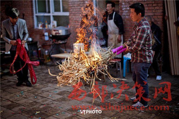 到了新郎家,也還有許多傳統(tǒng)習(xí)俗要完成,為了未來(lái)生活美滿幸福,先要驅(qū)邪避災(zāi)。