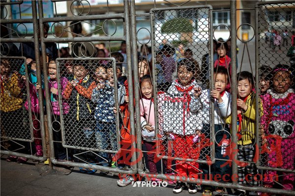 婚禮的車(chē)隊(duì)路過(guò)一所學(xué)校時(shí),小朋友們也都趴在門(mén)上向外張望,不論誰(shuí)家辦喜事,都是村里的大事了。