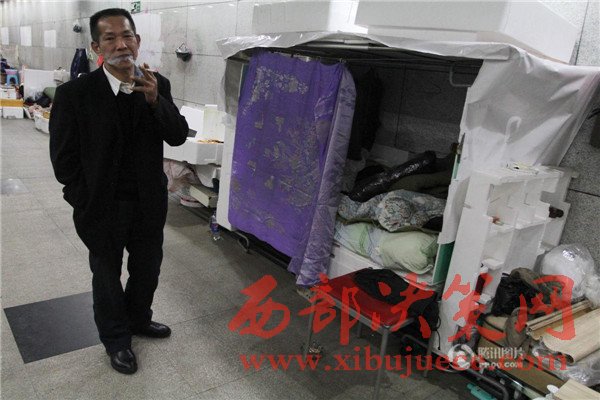 2016年11月27日,湖北武漢,10個(gè)流浪漢生活的中南財(cái)大地下通道,有床鋪、廚房、座椅、掛鐘、鏡子、自行車、取水處等,每天掃地,定期拖地,干凈整潔,儼然是一個(gè)溫馨家園。