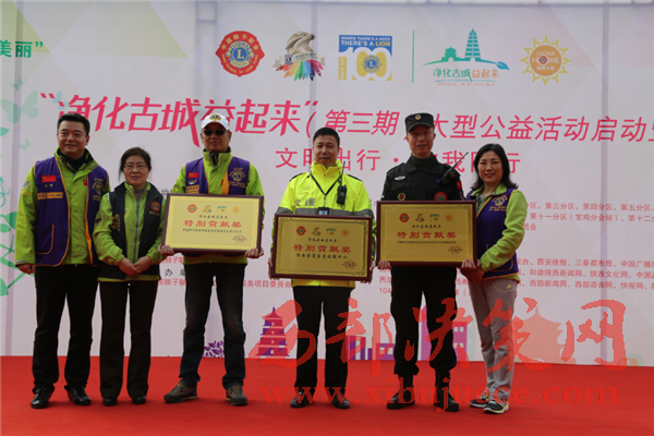 西部決策網(wǎng)訊(記者張靜)由陜西省殘疾人聯(lián)合會和中國獅子聯(lián)會(簡稱中獅聯(lián))陜西代表機(jī)構(gòu)共同舉辦的第三屆“凈化古城益起來”活動于3月18日上午在西安、寶雞、咸陽、洛陽、漢中、渭南六個(gè)城市共同啟幕。來自中獅聯(lián)陜西代表機(jī)構(gòu)十二個(gè)分區(qū)、五十多支服務(wù)隊(duì)的近千名名獅友和愛心志愿者身著統(tǒng)一服裝亮相。