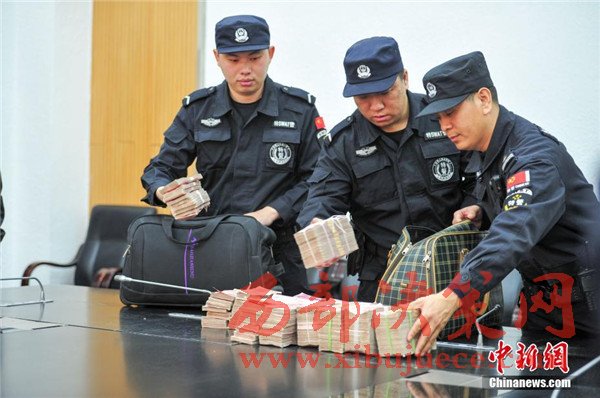 3月19日,遼寧沈陽,沈陽警方現(xiàn)場展示被盜贓款。