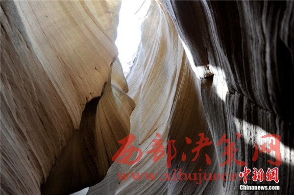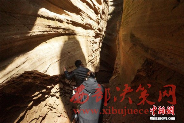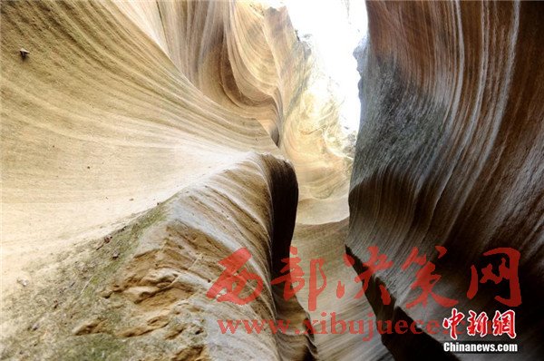 位于陜西省甘泉縣雨岔村的峽谷,是陜北黃土高原上的地質(zhì)奇觀,峽谷內(nèi)壁凹凸不平、線條流暢,走進(jìn)峽谷,峽壁上的線條如波浪從身邊劃過,最窄的地方只有一個人側(cè)著身子方可過去,其迷人之處與美國羚羊峽谷相媲美。