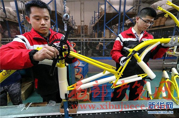 4月10日,在天津市武清區(qū)南蔡村鎮(zhèn)一家自行車生產企業(yè),工人在包裝共享單車車架。該企業(yè)日均下線共享單車約1500輛,目前正擴充生產線,開足馬力生產共享單車。隨著共享單車走紅大江南北,國內傳統(tǒng)自行車制造業(yè)迎來新的機遇。共享單車投放量的快速增加,給自行車行業(yè)注入一針強心劑,多地自行車企業(yè)著手調整思路、升級產能,為下一步發(fā)展做準備。