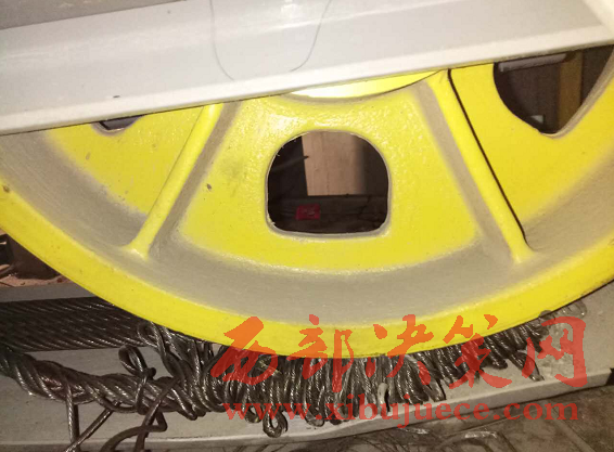 4月14日,西部大開(kāi)發(fā)工作人員來(lái)到凱躍歐洲城,見(jiàn)到凱躍物業(yè)的尹經(jīng)理,說(shuō)明來(lái)意后,尹經(jīng)理說(shuō),6號(hào)樓確實(shí)有五部電梯,其中有三部電梯在每月的電梯安檢時(shí)發(fā)現(xiàn)鋼絲繩有安全隱患,其中一部電梯鋼絲部分開(kāi)叉,已經(jīng)絞到滑輪下面,如果繼續(xù)使用,會(huì)有安全問(wèn)題。所以物業(yè)公司3月份就找到寶雞市特種設(shè)備檢驗(yàn)所(以下簡(jiǎn)稱(chēng)特檢所),要求現(xiàn)場(chǎng)檢查電梯到底是否能安全,能否繼續(xù)使用。