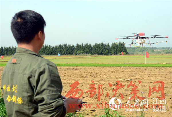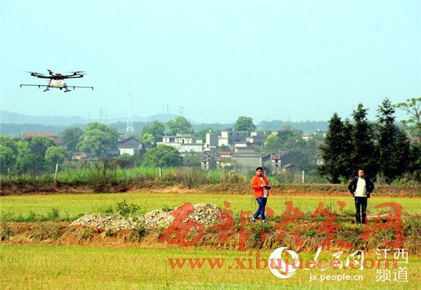 4月18日,江西省奉新縣宋埠鎮(zhèn)橋頭村奉新縣建華農(nóng)機(jī)合作社的稻田上空,數(shù)架無人機(jī)正在“嗡嗡”作業(yè),農(nóng)技員正在展示植保無人機(jī)噴灑農(nóng)藥的功能。