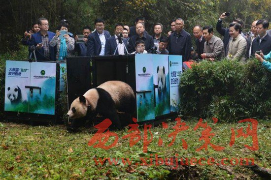 同時,我省在全國率先開展救護大熊貓易地放歸以及人工繁育大熊貓野化訓(xùn)練和放歸自然工作。截至2016年底,易地放歸救護病餓野生大熊貓2只,野化培訓(xùn)人工繁育大熊貓13只,放歸人工繁育大熊貓7只。2016年10月20日,大熊貓“華妍”“張夢”放歸自然活動在四川雅安栗子坪國家級自然保護區(qū)舉行。上午10點半,籠門開啟,大熊貓“華妍”和“張夢”相繼奔向山林。這是全球首次嘗試同時放歸兩只大熊貓。