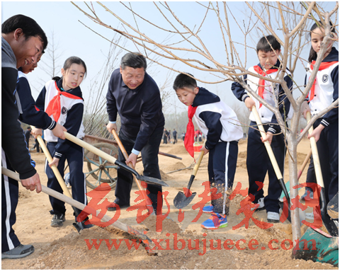 揮鍬鏟土填入樹坑,培實(shí)新土堆起圍堰,陽春三月里,習(xí)近平總書記在北京市朝陽區(qū)將臺(tái)鄉(xiāng)接連種下了一顆顆樹苗……