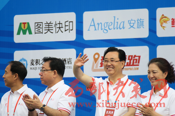蘭州市委副書記、蘭州市政府市長欒克軍向運(yùn)動員揮手致意(杜杰 攝)