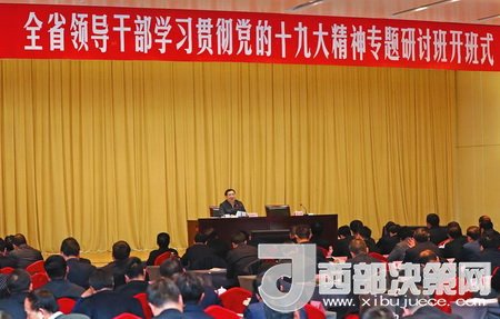 11月29日,全省領(lǐng)導(dǎo)干部學(xué)習(xí)貫徹黨的十九大精神專題研討班在西安開班。省委書記、省長胡和平出席開班式并講話。他強(qiáng)調(diào),要堅(jiān)定不移貫徹習(xí)近平新時代中國特色社會主義思想,緊盯追趕超越目標(biāo),踐行“五個扎實(shí)”要求,落實(shí)好省第十三次黨代會提出的“五新”戰(zhàn)略任務(wù),確保十九大精神在陜西省落地生根、見到實(shí)效。