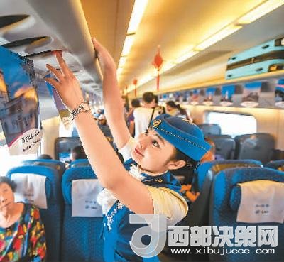 8月3日,在內(nèi)蒙古自治區(qū)烏蘭察布開往呼和浩特東站的列車上,乘務(wù)員在整理行李架。如今,中國高鐵不僅成為百姓的出行首選,更成為閃亮的國家名片。