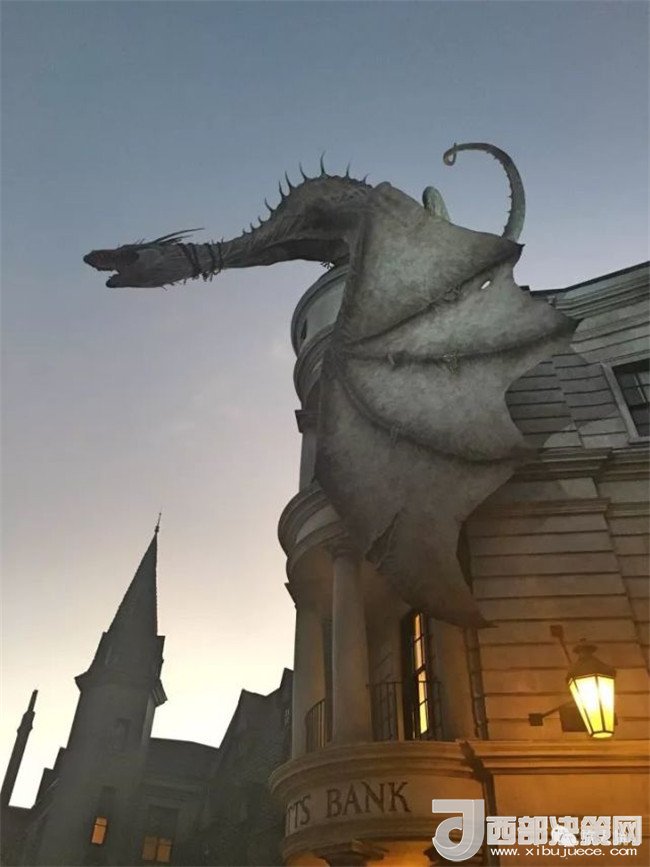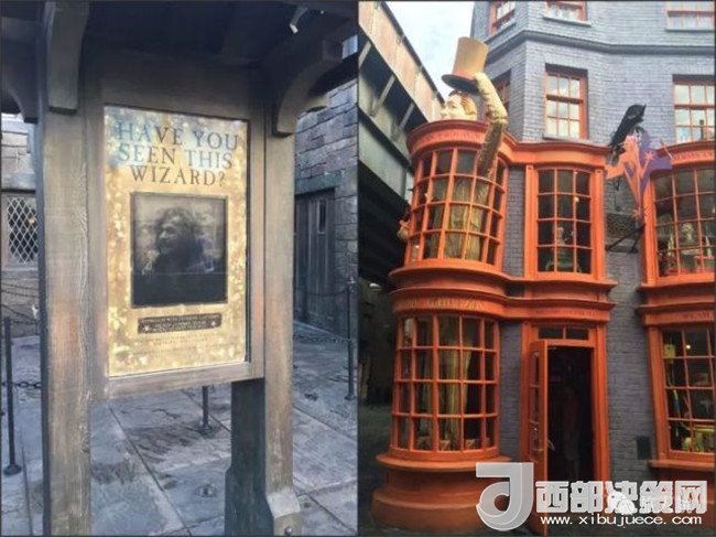 環(huán)球影城的員工說,霍格莫德村的時(shí)間點(diǎn)定在《哈利波特與阿茲卡班的囚徒》發(fā)生時(shí),所以鄧布利多還活著,慈祥地注視著我們這些麻瓜。三把掃帚門口還掛著小天狼星的通緝令,巴克比克還安然地在海格的小屋旁休憩,三人組都保持著三年級(jí)時(shí)的形象在黑魔法防御課教室里和你說話,那感覺就像一場(chǎng)時(shí)間和空間的雙重旅行。順便一提對(duì)角巷的時(shí)間點(diǎn)是第七本書,所以古靈閣上趴了一只噴火的龍,翻倒巷里有貝拉特里克絲的通緝令,弗雷德和喬治開了韋斯萊魔法笑料店,搭乘霍格沃茨特快穿梭在不同時(shí)間點(diǎn)的兩處對(duì)比來看,感覺十分有趣。