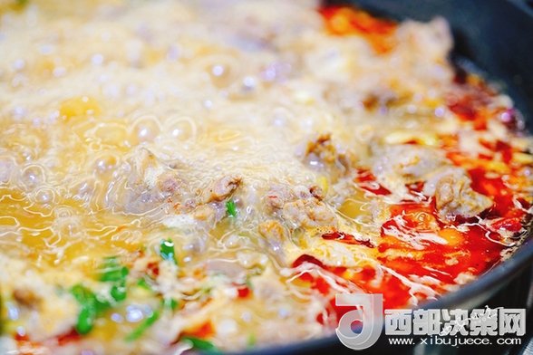 陜北傳統(tǒng)鐵鍋燉羊肉的方法,保持了羊肉的原汁原味,營養(yǎng)一點兒也不流失,吃肉的同時還能喝湯,一鍋咕嘟冒泡的鐵鍋燉羊肉,簡直就是大冬天里祛寒保暖的神器。兩個成都伙計從第一口起就停不下來了,一鍋3斤多羊肉,都讓他倆給造光了。
