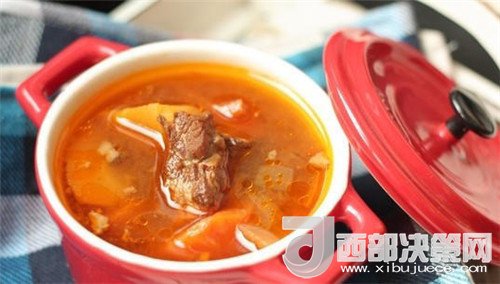 4.2個(gè)小時(shí)后,加少許鹽調(diào)味,再將切塊的番茄放入,再煮15分鐘即成。