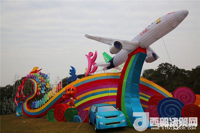 中國自主設(shè)計研制的C919國產(chǎn)大型客機(jī)也做成了彩燈,展示國家高精尖科技實力。